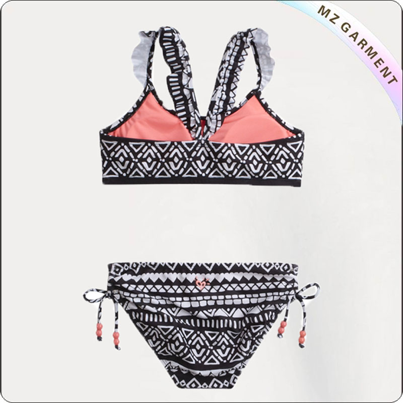 China Kids Bikini Suit Manufacturer Company Supplies Kids High Neck Bikini Suit with Geometric Pattern, 82% Nylon, 18% Elastane, Ultraviolet-Proof.