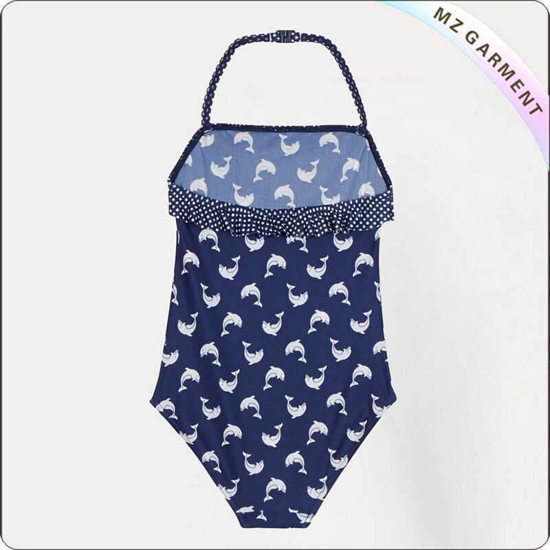 Kids Whale Bathing Costume, Navy Fabric, Halter Strap